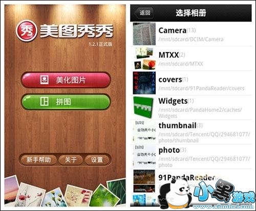 安卓美图秀秀v1.2.1的相册选取功能基于文件夹。在选取照片的时候,先看到所有有图片的目录,然后选择相应的目录再进入图片的缩略图展示。