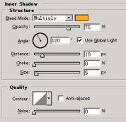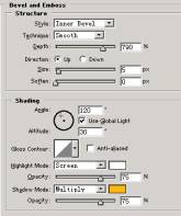 17.选择Creem Copy图层,并双击它调出Layer Style面板并分别勾选Drop Shadow(Blend Mode颜色为黑色),Inner Shadow(Blend Mode颜色为R:252,G:175,B:26),Belvel and Emboss (Highlight Mode颜色为白色,Shadow mode颜色为R:253,G:183,B:14)。Stroke(Gradien选择Orange, Yellow,Orange渐变)参数见图:
