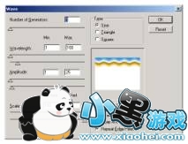 8.执行Filter/Distort/Wave,参数如图:在Layer 2图层为当前图层的情况下,点击Layer/Group with precious,将其与下一个图层组合起来。