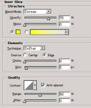 16.选择Layer 3图层,并双击它调出Layer Style面板并分别勾选Drop Shadow(Blend Mode颜色为R:140,G:109,B:2),Inner Shadow(Blend Mode颜色为R:252,G:175,B:26),Out Glow(Blend Mode颜色为R:251,G:216,B:132),Inner Glow(Blend Mode颜色为R:252,G:252,B:11)。参数见图: