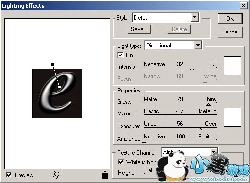 保证当前选择的是layer2图层,使用filter / Render / Lighting Effects,然后选择基本参数如下: