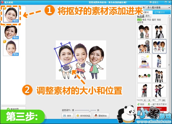 3.将抠好的素材都添加进来,调整素材的大小和位置。点击“保存”就大功告成咯!