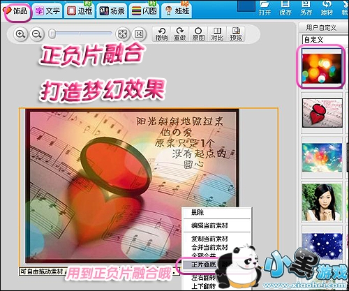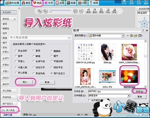 最重要的开始咯,要找一张炫彩的背景图导入用户自定义饰品中。