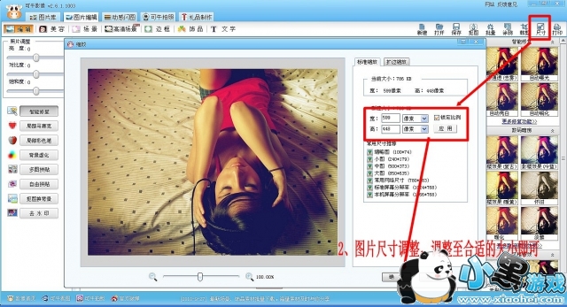 2、修改尺寸:点击尺寸,对图片尺寸进行修改到是和大小