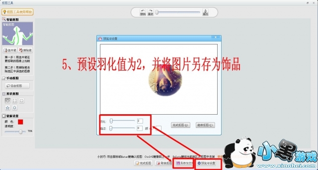 5、另存为饰品:点击预设与设置,边缘羽化调整为2,描边为最小,点击另存为饰品即可