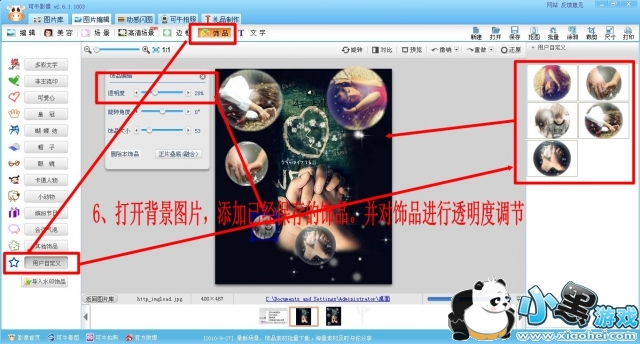 6、重复上面的步骤做多张泡泡图片,保存为饰品,选择一张准备好的背景图,为背景图添加上刚保存的饰品即可。