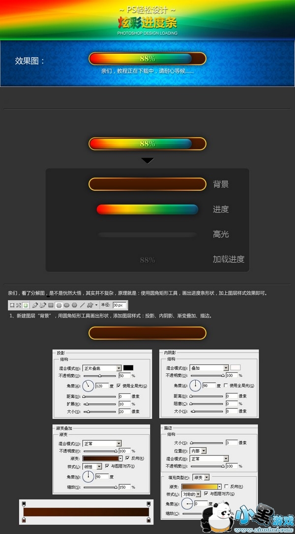 彩虹般的进度条是不是特炫呢?今天我们要学的就是用photoshop制作彩色进度条。教程可是很简单的哦,只需要三步就可以完成啦。