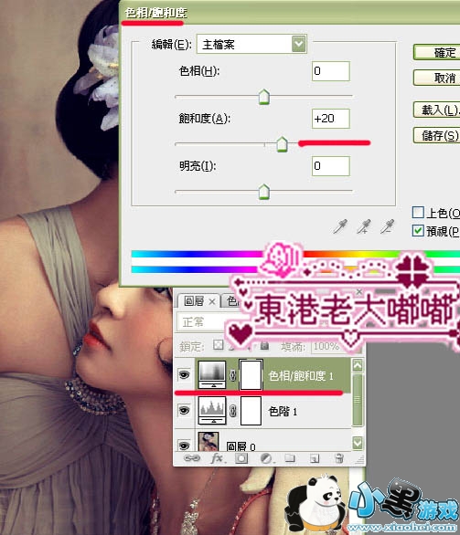 3、图层,新增调整图层,色相/饱和度,数值如下设置。