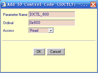 当应用程序用DeviceIoControl函数和驱动程序进行数据通信时,“Add”等按钮用来定义DeviceIoControl的控制命令,即给驱动程序增加一些IOCTL接口。如图7-1所示。当选择Buffer Access为Buffered时,驱动程序通过Kirp::IoctlBuffer来获取应用程序的输入、输出缓冲区;当选择Buffer Access为Direct时驱动程序通过Kirp::IoctlBuffer来获取应用程序的输入缓冲区,通过Kirp::Mdl来获获取应用程序的输出缓冲区。