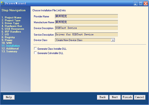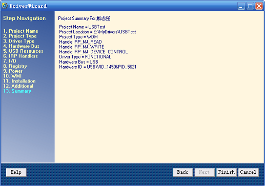 接下来的Installation、Additional和Summary三个选择对话框按默认方式就可,入下图11、图12和图13所示。这样,利用DriverWizard就创建了一个基本USB驱动程序框架。