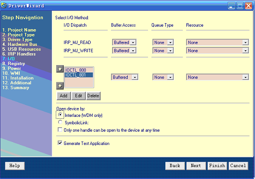 第三个选择指应用程序打开设备的方式:以符号连接名或GUID接口方式(Interface)。