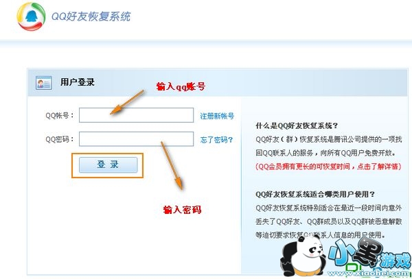 首先打开qq好友恢复系统http://huifu.qq.com/(很多朋友都不知道qq好友恢复系统在哪,这个就是),输入qq号码和密码。