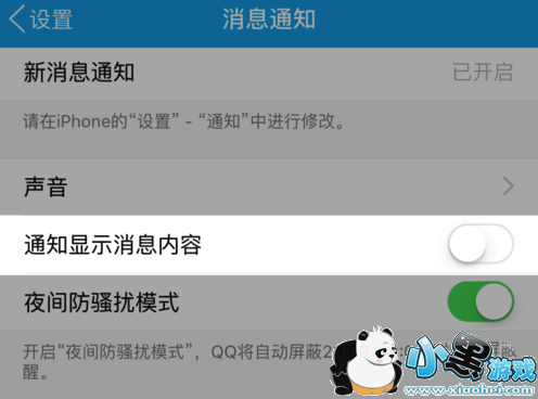 接下来请关闭【通知显示消息内容】这个选项,如图所示