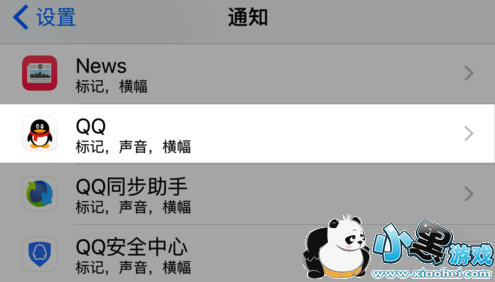 接着在通知列表里,找到QQ一栏并点击进入,如图所示