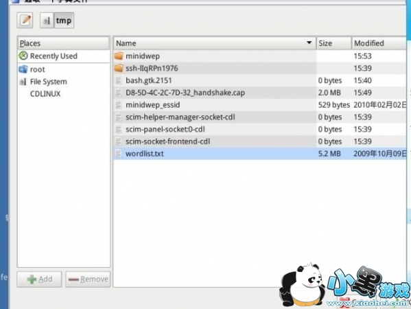 8、接下来,把你的字典贡献给minidwep-gtk!嘿嘿,这个都会了吧?我给他一个默认的字典,就是最后一个wordlist.txt。你可以根据情况来选择字典,其实我上藏了3g多的字典呢!嘿嘿,不过这个路由是弱口令的!所以这个字典足够了!