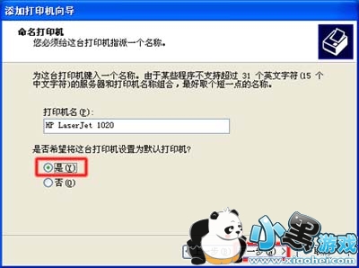 在“命名打印机”窗口中,选择“是”选项,点击“下一步”按钮。如图 9 命名打印机所示: