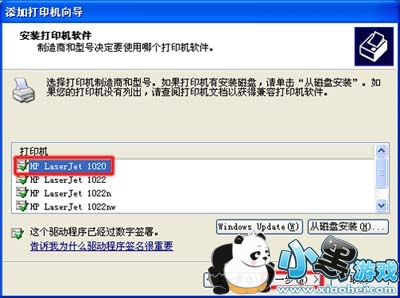 在“安装打印机软件”窗口中,选择“HP LaserJet 1020”型号,然后点击“下一步”按钮。如图 7 选择型号所示: