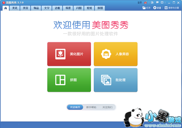 众所周知,美图秀秀是一款美图的逆天神器,尤其在人像处理上,强大的修图功能令人叹服,简单,可操作性强,不过说起批量处理,这是一直是其软肋。在美图秀秀的V3.7版中,新增的批处理功能运用而生,弥补了这一遗憾。新的批量处理功能将会在美图秀秀V3.7版中有独立的入口,即在开启美图秀秀软件后,在欢迎首页有批量处理功能按钮。
