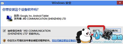 STEP2:重启豌豆荚,豌豆荚会重新安装驱动,请您按照豌豆荚的提示进行操作,如果弹出「用户账户控制」界面,请您选择「是」。并在接下来弹出的窗口中点击「安装」按钮;如果您点了「否」,豌豆荚正确加载您手机的驱动,您需要回到 STEP 1 重新操作;