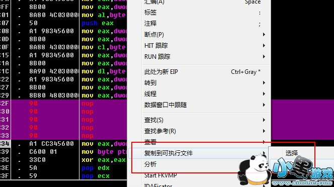 右键->复制到可执行文件->所有修改,再点击全部复制即可。