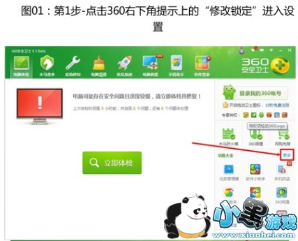 通过点击360右下角的提示“修改锁定”(如下图),然后点击360安全卫士主面板的功能大全,进入360浏览器防护中心。
