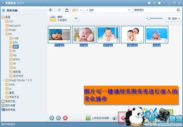 美图看看是一款小巧又功能全面的图片浏览工具,大图浏览流畅、能够批量化的实现图片格式大小等调整,同时又能方便的实现微博、QQ空间的分享操作。所以,如果你也想在网上和朋友一起分享自家宝贝的可爱照片,不妨用美图看看来帮你看图选图并分享网络吧!
