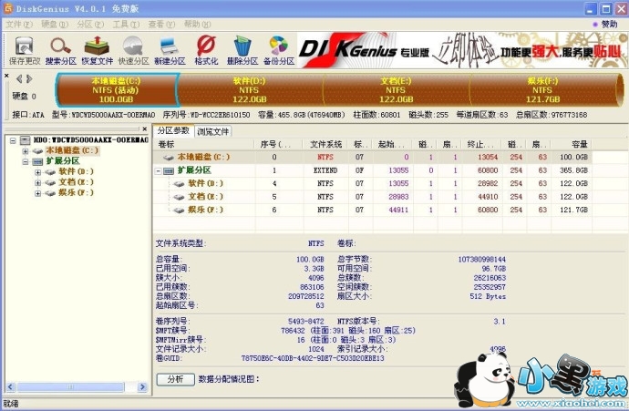 当你用光盘分完区之后,重启,打开 DiskGenius,当然DiskGenius也可以分区,只是一键更适合小白罢了。