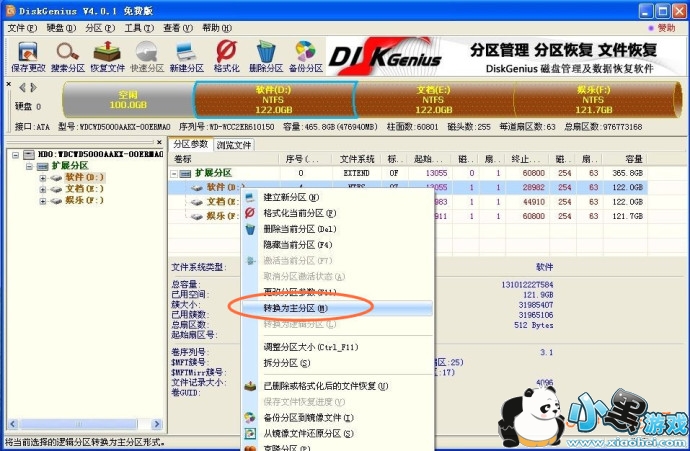 然后鼠标放到D盘上,选择 转换为主分区(M)选项,