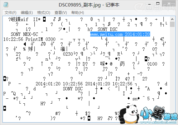 打开“记事本”,将照片拖到记事本中,会有一堆乱码呈现在你面前。仔细看就会发现一些端倪。