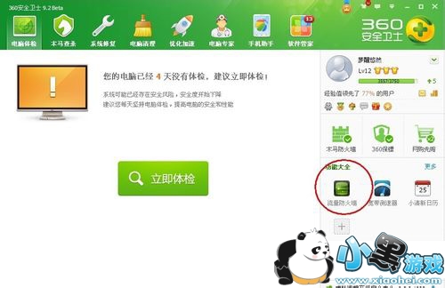 3.你可以可以选择360安全卫士图标,在功能大全里找到流量防火墙的标志,在更多功能里就可以找到