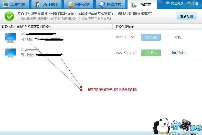 等待检测完成就可以看到你的无线网络有多少连接,如图: