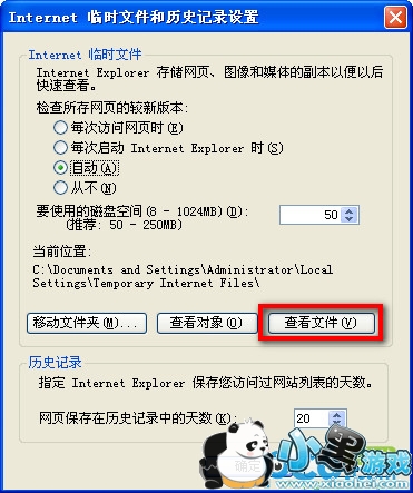 第三步、点击设置,点击设置窗口中的“查看文件”;