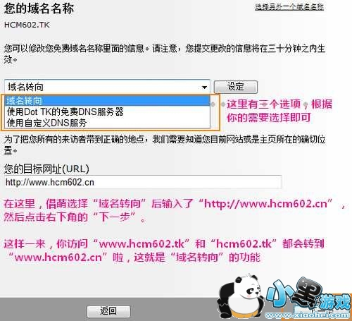 域名转向:就是跳转功能,即访问TK域名,跳转到你设置的网址(如下面所示):