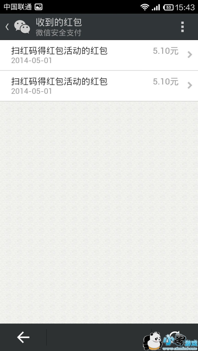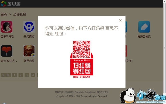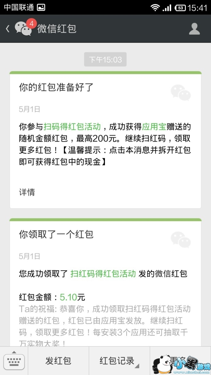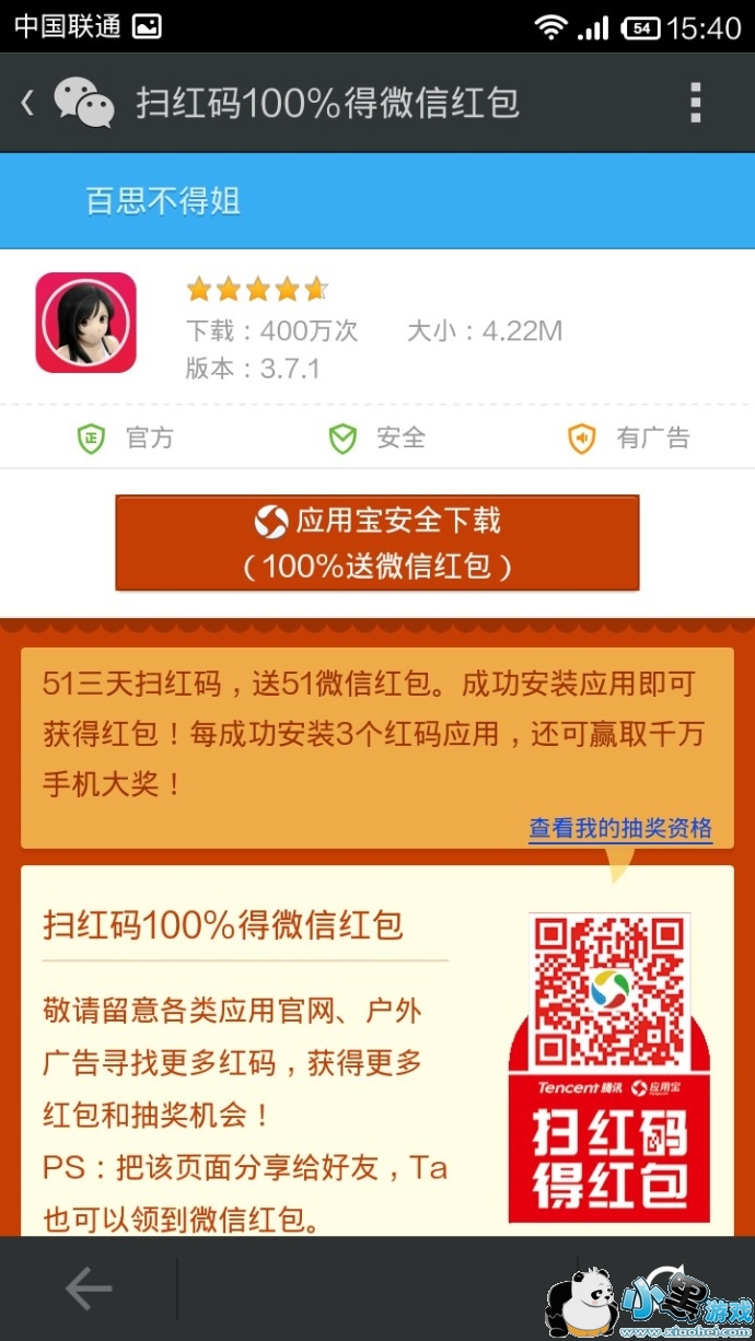 微信应用宝扫码中红包,金额随机。暂时每个红包(5.1元)