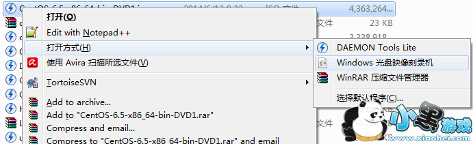 首先找到一个ISO镜像文件,如果没有关联第三方软件打开的情况下,双击ISO文件就会弹出刻录机选项了。如果第三方软件关联了ISO,那就右键->打开方式->windows 光盘映像刻录机也会打开刻录机选择。