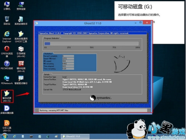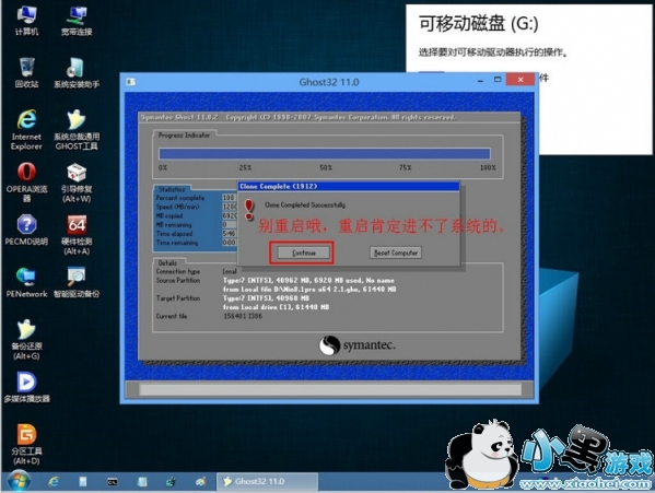 4、用PE里面的GHOST工具把GHO克隆进C盘。如下图: