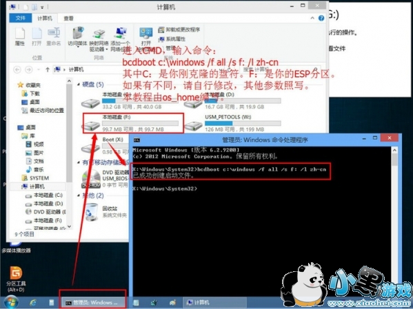 5、输入命令把启动信息指去你的ESP分区。如下图: