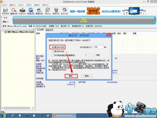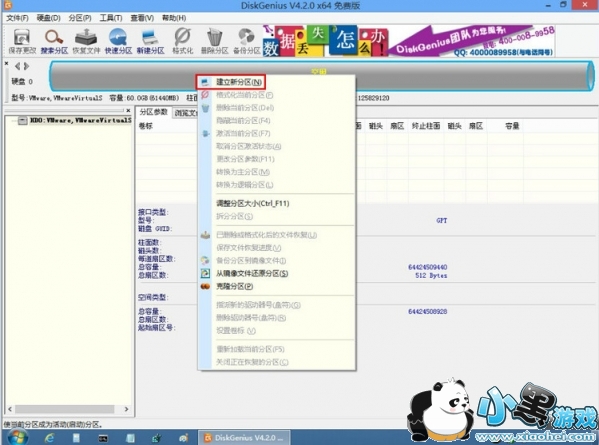 这里要注意的是,如果你当前硬盘已经有数据了,且不想影响数据,则请下载DiskGenius专业版,并运行64位专业版。因为PE里的DiskGenius是免费版,不支持在数据无损的情况下MBR转GPT或GPT转MBR。这里实验的环境是空硬盘,所以直接建立GPT分区。如下图: