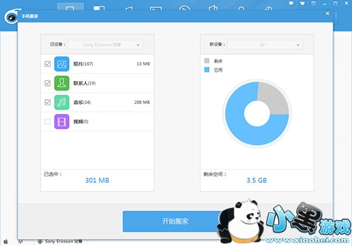 手机搬家 可以实现任意两台手机之间,信息(音乐、视频、照片、联系人、短信、应用)的相互搬移,并且完美支持iPhone 6。具体包括: