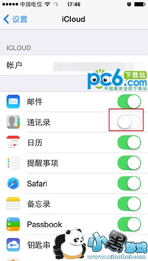 2、将手机上icloud里的通讯录功能关闭