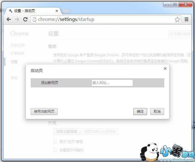 3.设置“启动页”-添加新网页,输入www开头网址点确定就OK了,如下图所示: