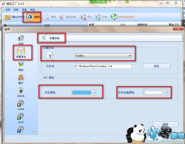第二步:点开“选项”,选择“字幕字体”,更改字体、颜色等信息