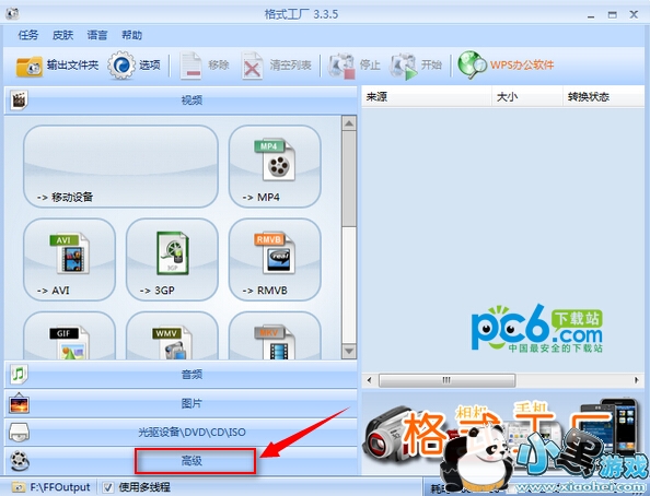 1.打开格式工厂,看到主界面的左侧,选择“高级”