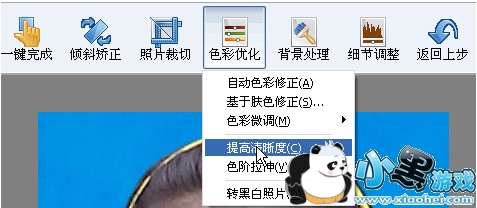 第二步:然后点击工具栏里“色彩优化”------“提高清晰度”就可以了,