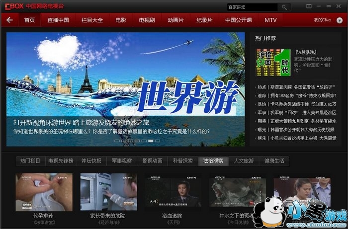 4) 栏目/电影/电视剧等页面:您可以点击栏目/电影/电视剧等分类标签查找中国网络电视台提供的海量的分类点播视频等节目内容