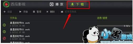 如果想查看视频下载进度,可以点击“下载”功能,如图能查看下载进度和速度,如果想打开下载的视频文件,可以点击下载---下方有一个“打开文件夹”