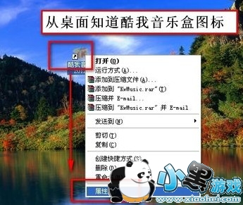 第二步:下载下来后,在桌面上找到“酷我音乐盒”的图标,然后点击属性