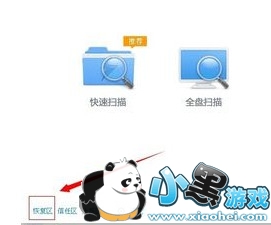 三:把鼠标移到底部,这时我们可以看到“恢复区”字样,点击便可进入。