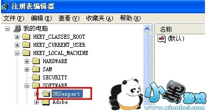 第七步:依次展开“我的电脑”--“HKEY_LOCAL_MACHINE”--“SOFTWARE”,找到360expert,右击鼠标删除