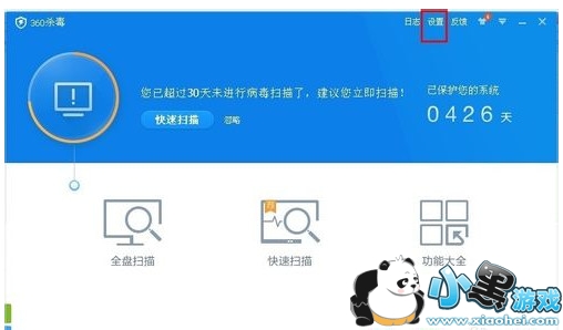 第一步:找到360杀毒图标,双击打开360杀毒,点击右上角的“设置”按钮